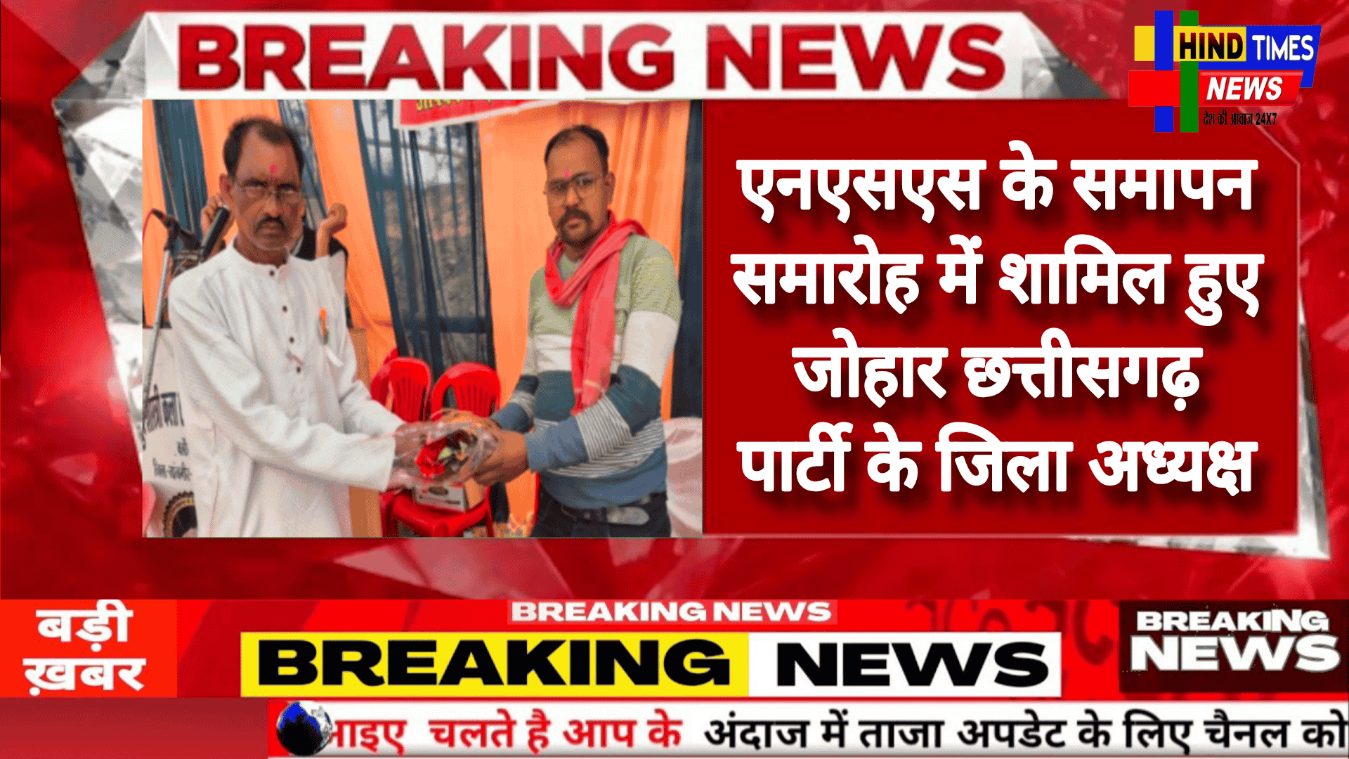 एनएसएस के समापन समारोह में शामिल हुए जोहार छत्तीसगढ़ पार्टी के जिला अध्यक्ष