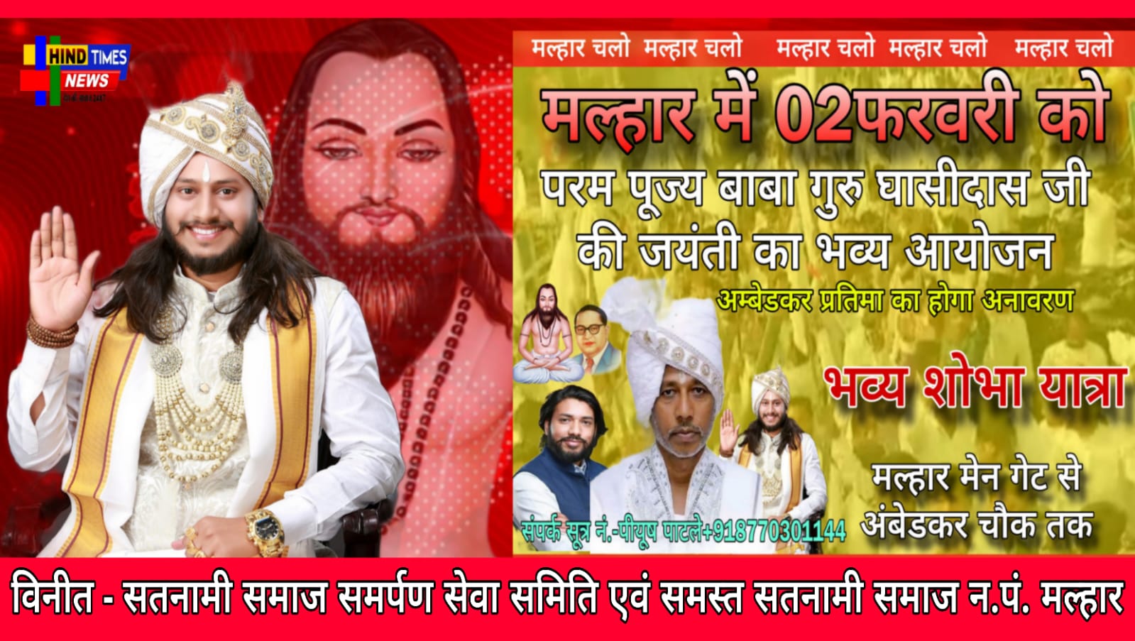 मल्हार में 02फरवरी को परम पूज्य बाबा गुरु घासीदास जी की जयंती का भव्य आयोजन, अम्बेडकर प्रतिमा का होगा अनावरण