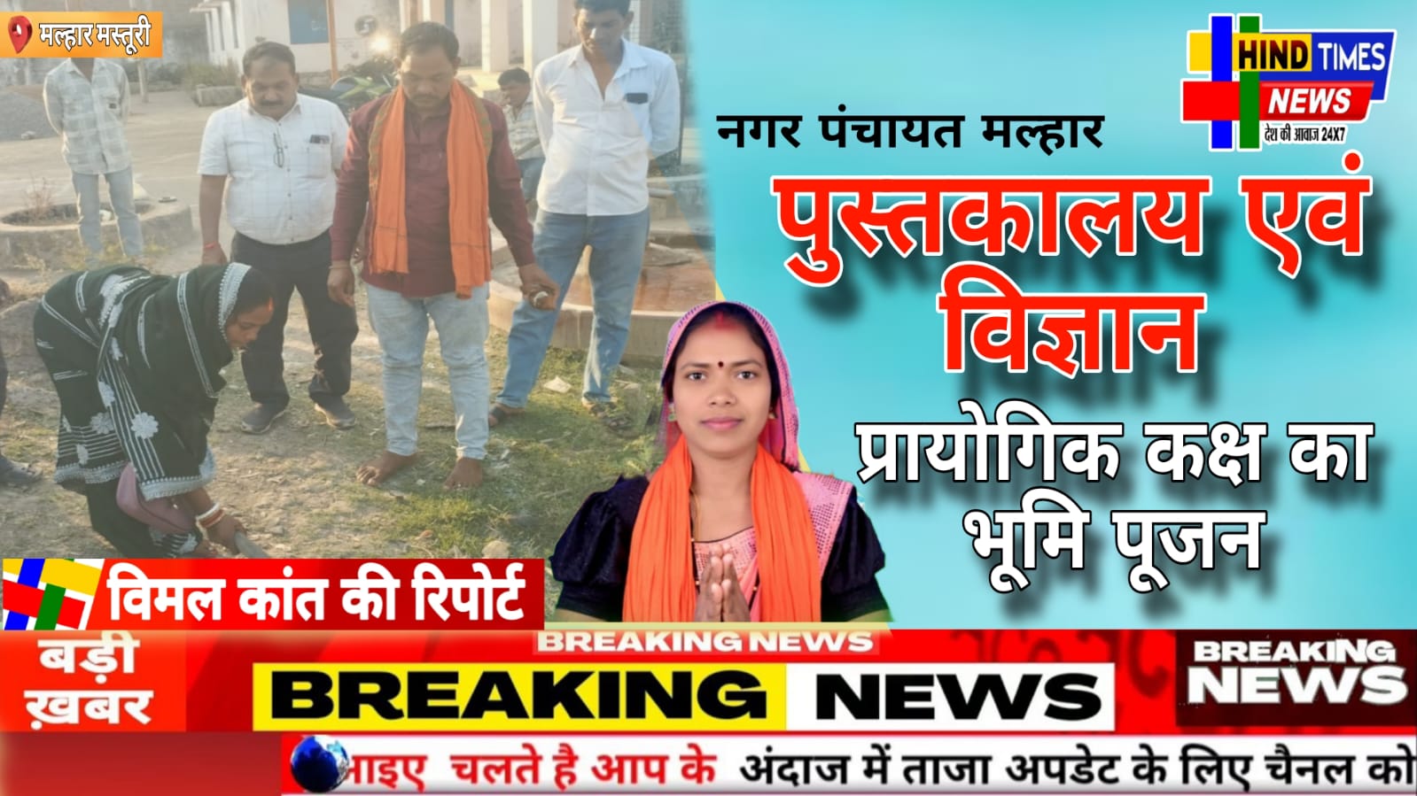 विमल कांत की रिपोर्ट Hindtimes news24x7 नगर पंचायत मल्हार के उच्चतर माध्यमिक विद्यालय बुधवारी बाजार के पास पुस्तकालय व विज्ञान प्रयोगीक शाला का भूमि पूजन नगर पंचायत मल्हार अध्यक्ष श्रीमती…