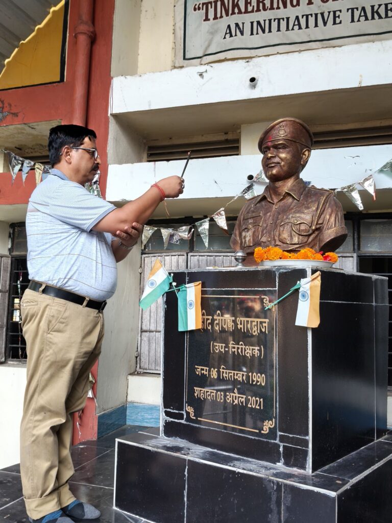 Hindtimes news बिलासपुर जिले के पीएम श्री स्कूल जवाहर नवोदय विद्यालय मल्हार में पुलिस स्मृति दिवस पर देश की रक्षा के लिए अपने प्राण बलिदान देने वाले वीर बलिदानी शहीद स्वः श्री दीपक भारद्वाज को भावभीनी श्रद्धांजलि अर्पित की गयी। इस अवसर पर विद्यालय प्राचार्य मनोज कुमार श्रीवास्तव द्वारा विद्यालय स्टॉफ, एनसीसी अधिकारीगण और विद्यार्थियों की उपस्थिति में स्व. श्री दीपक भारद्वाज की प्रतिमा पर माल्यार्पण और अमर जवान ज्योति पर श्रद्धा सुमन अर्पित करने के साथ किया गया।