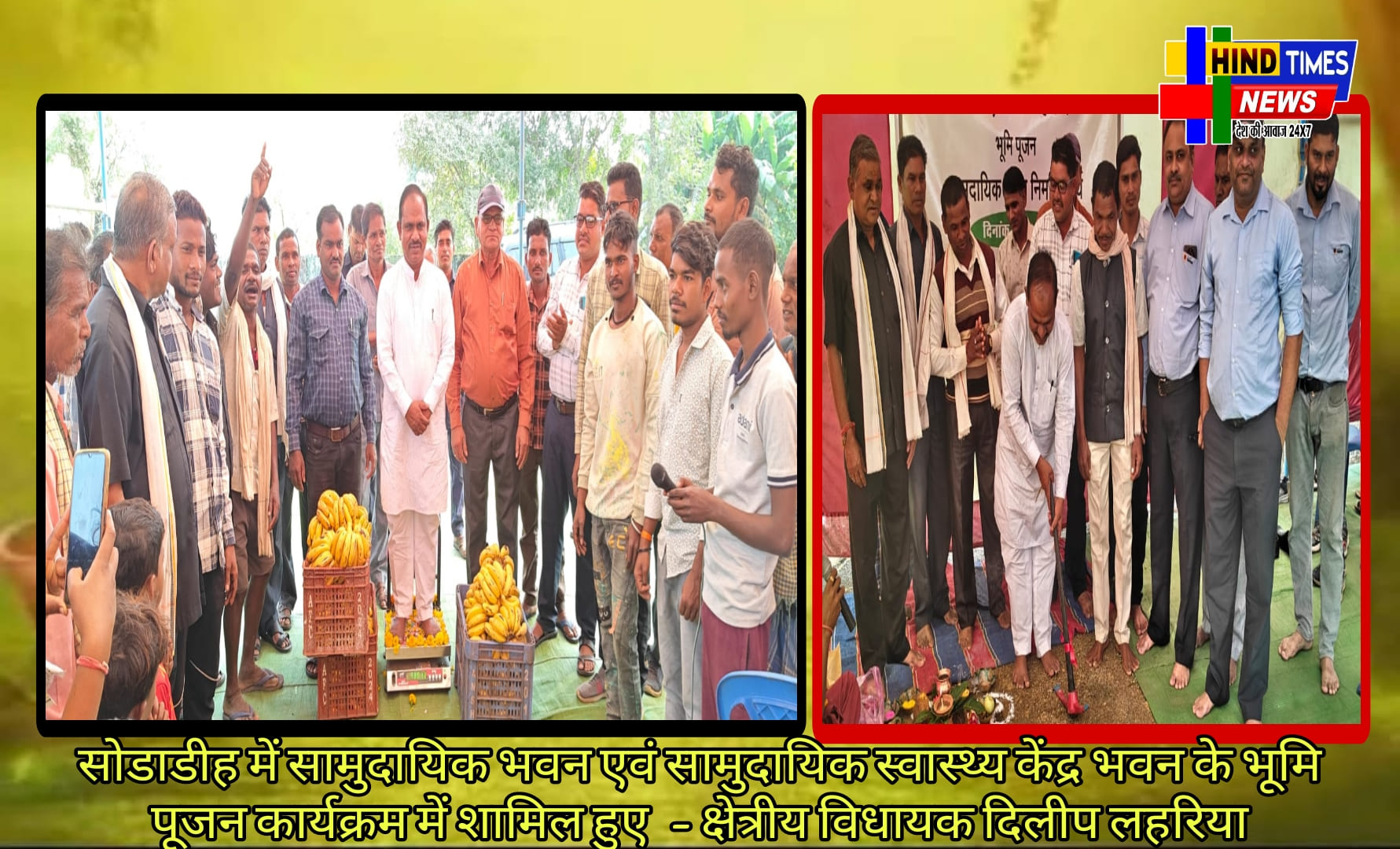 Hindtimes news मस्तूरी पचपेड़ी/ विधायक दिलीप लहरिया के पहल एवं अनुशंसा पर जिंदल स्टील & पावर प्लांट लिमिटेड द्वारा सीएसआर मद से ग्राम-पंचायत गोडाडीह के आश्रित ग्राम सोडाडीह में 18 लाख रुपए की लागत से सामुदायिक भवन एवं 40 लाख रुपए की लागत से सामुदायिक स्वास्थ्य केंद्र भवन के भूमि पूजन का कार्यक्रम किया गया।