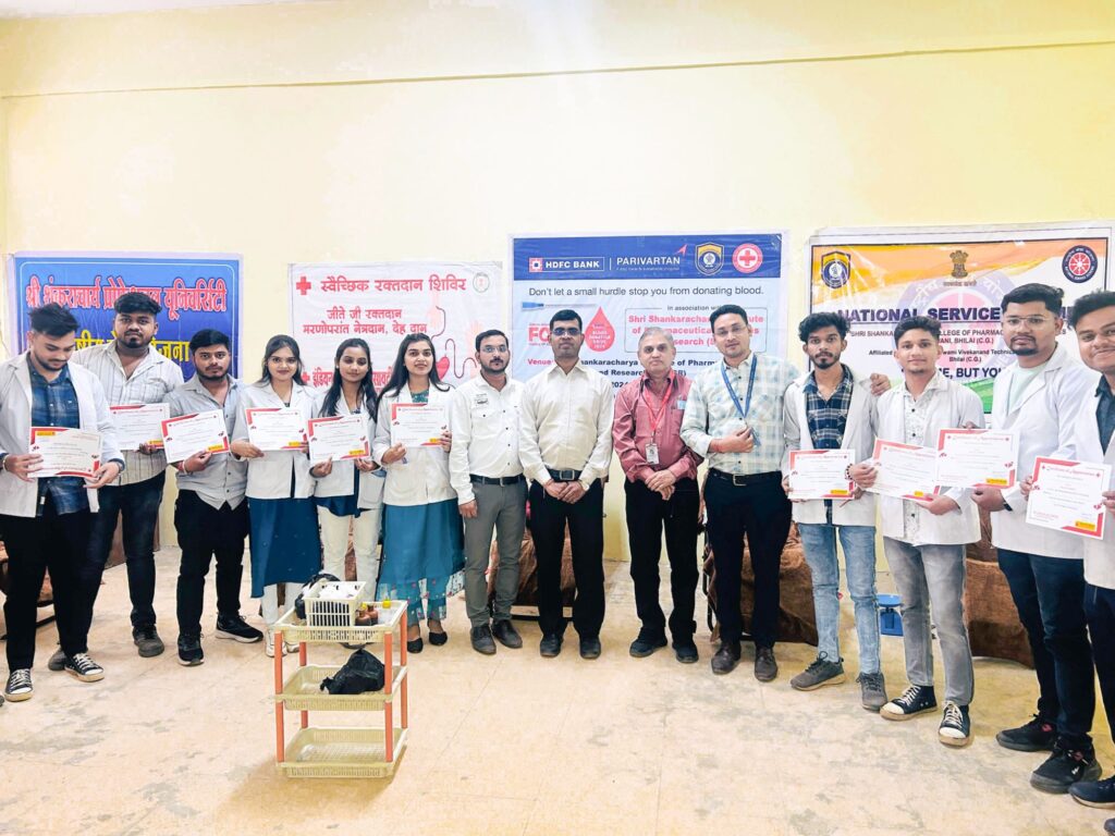दिनाँक 21/11/2024 को कार्यक्रमों के क्रम रक्त दान शिविर का आयोजन इंडियन क्रॉस सोसाइटीज, एच डी एफ सी बैंक रायपुर के सह सहयोग एवं यहां के शिक्षक सह. प्रोफेसर नरेंद्र कुमार, सह. प्रोफेसर धनुष राम, सह. प्रोफेसर तुषार वर्मा के देख रेख मे किया गया। जिसमें छात्रों और शिक्षक के साथ अन्य लोगो ने रक्त दान किया जिन्होने रक्त दान किया उनकी संख्या लगभग 85 रही। रक्त दान शिविर का शुभारंभ मुख्य अतिथि के रुप में उपस्थित प्रो. डॉ. ए. के.झा (कुलपति),