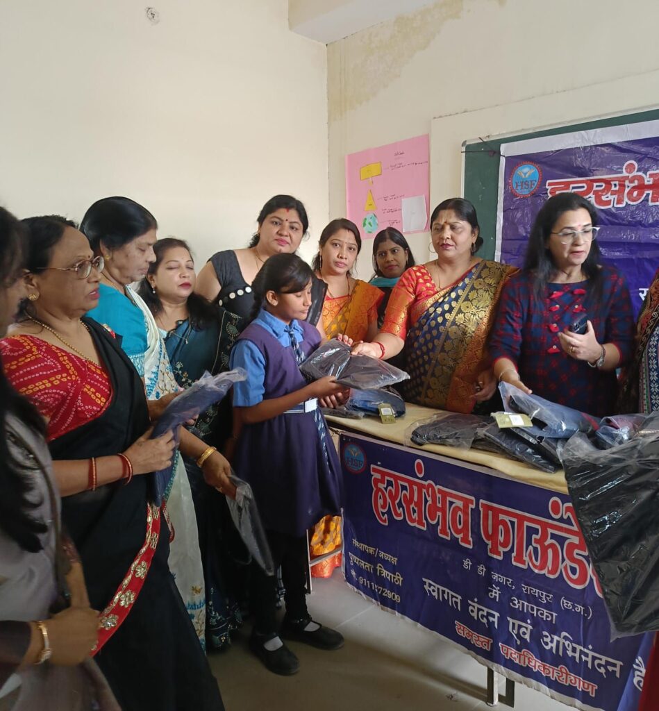 इस अवसर पर शाला की प्राचार्या महोदया नीता मनहरे संस्था की संरक्षक सीमा छाबड़ा संस्थापक/ अध्यक्ष पुष्पलता त्रिपाठी पूनम शुक्ला वीणा रावत रेवती सिंह राधा रानी श्रीवास उर्मिला सोनी कस्तूरी साहू छाया देवांगन ममता त्रिपाठी हेमलता सिंह सरिता झा प्रियंका कालरिया गीता कटारिया एवं डॉ मुकेश शाह जी अमिताभ अग्रवाल प्रियंका कौशल आदि सभी के सहयोग से श्राद्ध अमावस्या शनिवार को नए स्वेटर का वितरण किया गया