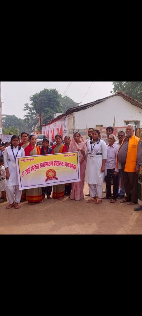 Hindtimes news धमधा–विविध रचनात्मक संदेश को जन मानस तक पहुँचाने का हर संभव प्रयास करने वाली संस्था शिक्षण समिति धमधा के तत्वाधान में संचालित ऊँ सांई संस्कृत उत्तर मध्यमा विद्यालय धमधा द्वारा नगर की ओर से दिनांक ३०/११/०२४ को शोभायात्रा निकाल कर भारत के राष्ट्रपति का अभिवादन करते हुए कोटिशःधन्यवाद अभार व्यक्त किए । यह ऐतिहासिक प्रसिद्धि ७५ वर्ष बाद मिला भारत के संविधान को संस्कृत भाषा में लिखा गया । जिसका विमोचन दिनांक २६/११/२०२४ को संविधान दिवस के पवित्र अवसर पर प्रधानमंत्री श्रीमान नरेन्द्र दामोदर प्रसाद मोदी सहित केन्द्रीय बाॅडी की उपस्थिति में सम्मानीया श्रीमती *द्रोपदी मुर्मू* के कर कमलो द्वारा किया गया । यह दिन वास्तव में संस्कृत जगत के लिए अविस्मरणीय रहेगा ।
