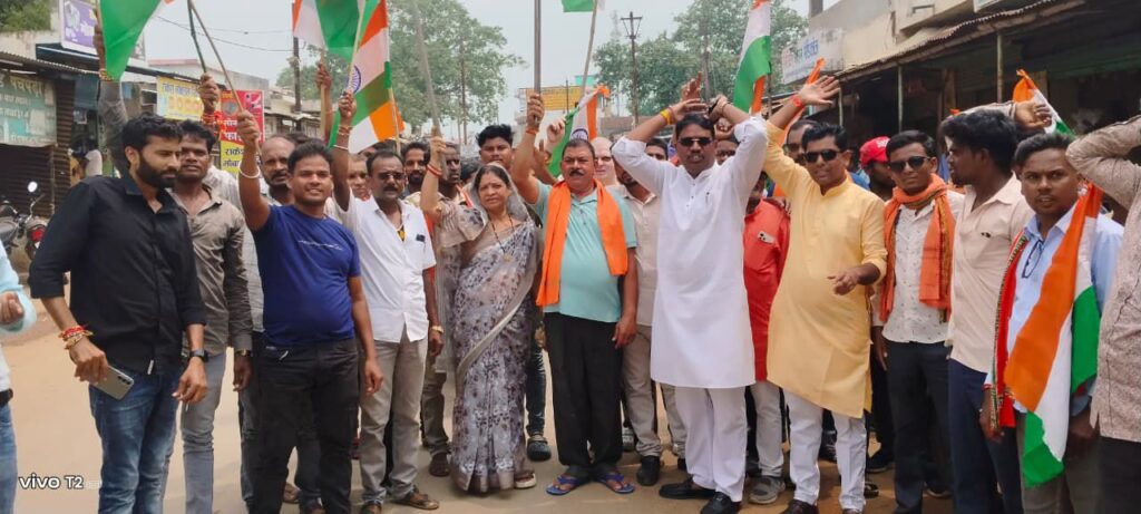 के नेतृत्व में सैकड़ो भारतीय जनता पार्टी के पदाधिकारी कार्यकर्ता सामाजिक कार्यकर्ता सामाजिक पदाधिकारी बुद्धिजीवी लेखक पत्रकारों के साथ एक भव्य तिरंगा यात्रा निकाली गई जिसका नेतृत्व राजकुमार साहू ने किया उन्होंने कहा कि आजादी देश के असंख्य क्रांतिकारियों के सर्वस्व बलिदान के कारण मिली है जो की बहुत ही कीमती और अमूल्य है इस आजादी को बनाए रखना हम सभी का कर्तव्य है तिरंगा यात्रा का उपदेश्य प्रत्येक जनमानस के मन में देश मे एकता अखंडता तथा राष्ट्रीयता की भावना को जागृत कर स्वतंत्रता के महत्व को समझाना हैं तथा देश के विकास में प्रत्येक व्यक्ति का समुचित योगदान हो ऐसी भावना को लेकर देश के शहीदों को नमन करते हुए यह तिरंगा यात्रा आंदोलन बनाने का आवाह्नान किया इस अवसर पर जिला बिलासपुर ग्रामीण के महामंत्री एस कुमार मनहर,सरोजिनी रामनारायण भारद्वाज ,महामंत्री रोहित कश्यप राजकुमार वर्मा दिलीप पांडेय ,धनेश्वर केवट नरेन्द्र नायक संजय रामहरण झंडी देवेंद्र जायसवाल रामनिवास साहू हेमलाल जगत रामु अयोध्या खिलावन पटेल केदार साहू आकाश सहित सैकड़ो की संख्या मैं कार्यकर्ता उपस्थित रहे