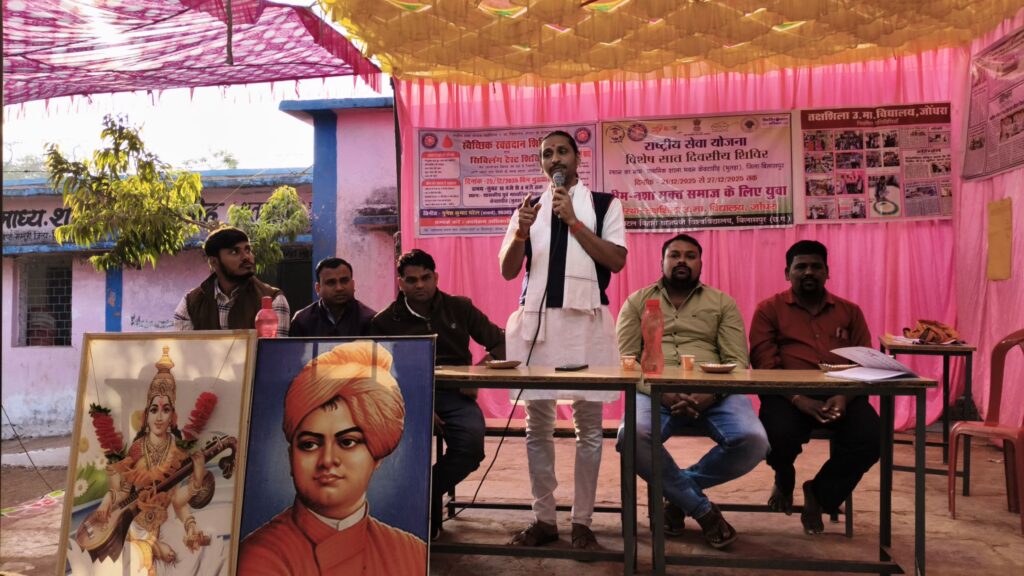 Hindtimes News अटल बिहारी वाजपेयी विश्वविद्यालय से सम्बंधित राष्ट्रीय सेवा योजना की इकाई तक्षशिला उ मा वि जोंधरा द्वारा आयोजित सात दिवसीय विशेष शिविर के तृतीय दिवस के अवसर पर ग्राम में बौद्धिक परिचर्चा का आयोजन किया गया।