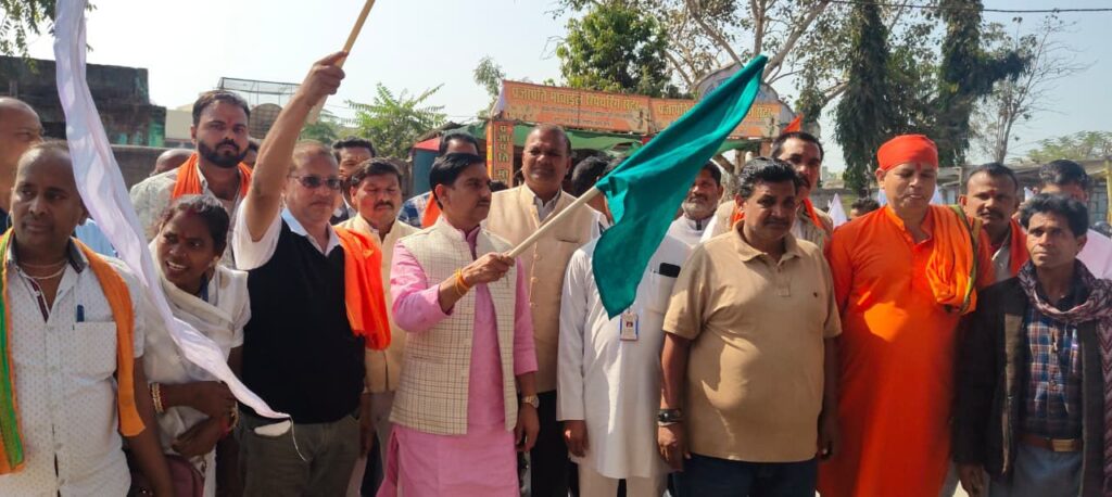 नशा मुक्ति जन जागरण रैली का शुभारंभ मुख्य अतिथि के रूप में केंद्रीय राज्य मंत्री श्री तोखन साहू अध्यक्षता पूर्व कैबिनेट मंत्री डॉ कृष्णमूर्तिबंधी विशिष्ट अतिथि भाजपा जिला ग्रामीण के अध्यक्ष मोहित जायसवाल सम्मिलित हुए तोखन साहु ने जनजागरण रैली को हरी झंडी दिखाकर मस्तूरी जोंधरा चौक से रवाना किया रैली रवाना करने के पश्चात केंद्रीय मंत्री जी नगर पंचायत मल्हार के मां डिडिनेश्वरी मंदिर परिसर पहुंचे जहां पर भारतीय जनता पार्टी के पदाधिकारी व प्रतिनिधियों द्वारा ढोल नगाड़ों के साथ अतिशी स्वागत किया गया साहू जी ने मां डिंडेश्वरी की पूजा अर्चना कर समस्त क्षेत्र वासियों के लिए सुख समृद्धि की कामना की नगर पंचायत के अध्यक्ष धनेश्वरी धनेश्वर कैवर्त ने केंद्रीय राज्य मंत्री से नगर पंचायत मल्हार की मुख्य सड़क की चौड़ीकरण तथा नगर पंचायत मल्हार के ऐतिहासिक तालाबों के सौंदरीकरण की मांग को रखी जिसको केन्द्रीय राज्यमंत्री साहू जी ने नगर पंचायत मल्हार की धार्मिक ऐतिहासिक तथा पुरातात्विक महत्व को देखते हुए विस्तृत कार्य योजना तैयार करने के लिए अधिकारियो को निर्देशित किया