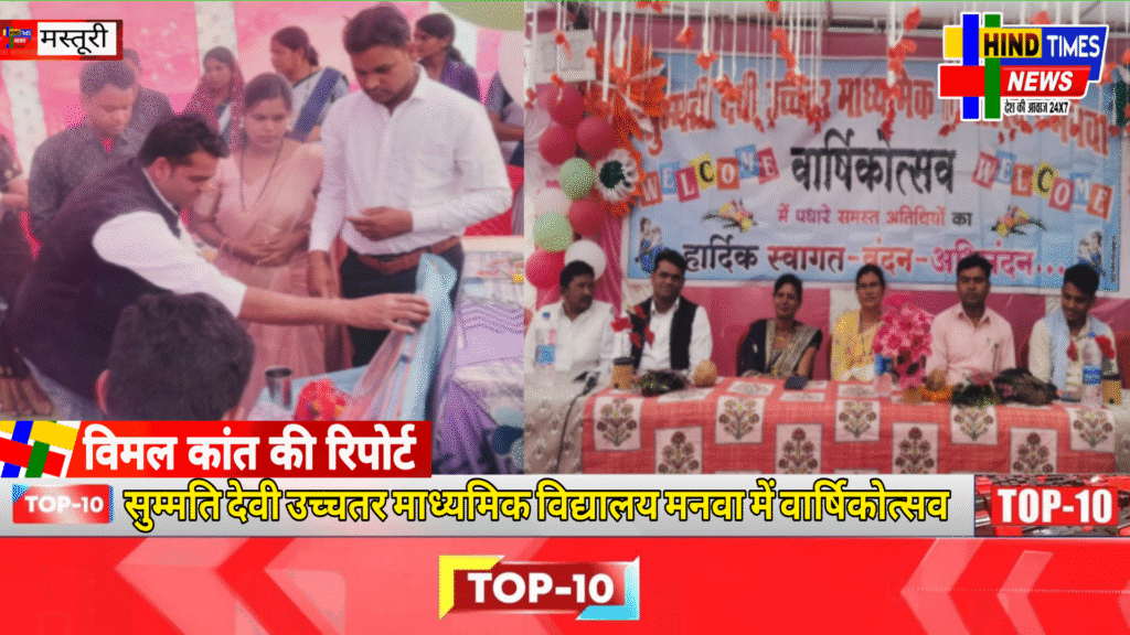 Hindtimes news जनपद मस्तूरी क्षेत्र मनवा स्थित सुम्मति देवी उच्चतर माध्यमिक विद्यालय में वार्षिकोत्सव कार्यक्रम हर्षोल्लास के साथ संपन्न हुआ। कार्यक्रम में विद्यालय के छात्र-छात्राओं ने रंगारंग सांस्कृतिक प्रस्तुतियों के माध्यम से अपनी प्रतिभा का शानदार प्रदर्शन किया, जिसे उपस्थित अतिथियों एवं अभिभावकों ने खूब सराहा।कार्यक्रम में मुख्य अतिथि दिलीप लहरिया उपस्थित रहे