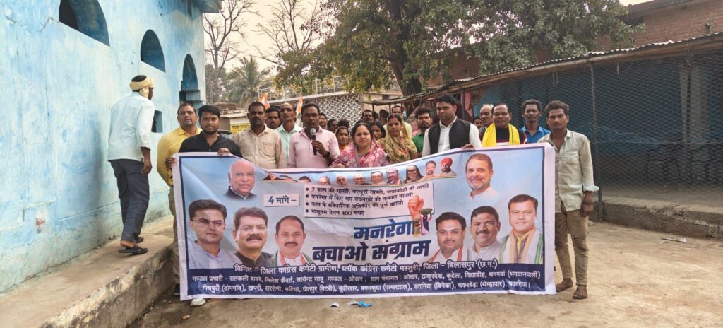 Hindtimes news मस्तूरी विधानसभा क्षेत्र मनरेगा बचाव संग्राम के तहत ओखर मंडल के बेटरी से आरंभ कर 21 गांवो में जनचौपाल नुक्कड़ सभा पदयात्रा कर ओखर में समापन हुआ