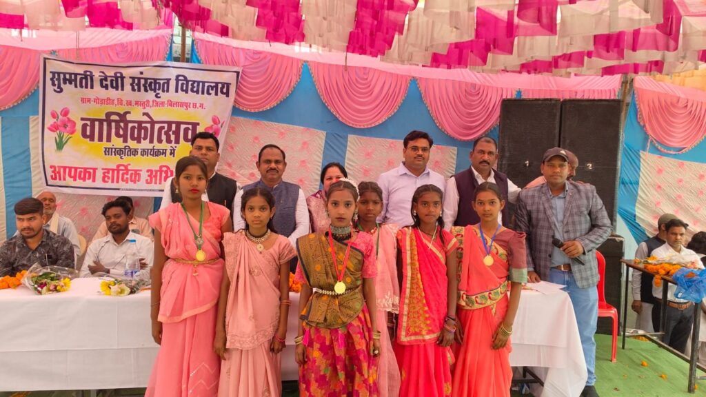 Hindtimes news मस्तुरी क्षेत्र के गोड़ाडीह में सुम्मती देवी संस्कृत विद्यालय में प्रति वर्ष के भाती इस वर्ष भी छात्र छात्राओं द्वारा कला के क्षेत्र में अपनी अपनी कलाओं को प्रदर्शित करने का अवसर वार्षिक उत्सव में ही देखने को मिलता है इस कार्यक्रम मे स्कूली बच्चों द्वारा सांस्कृतिक, कला पर भारी बढ़ चढ़कर हिस्सा लिया गया , खेल कूद, पत्र लेखन सहित अन्य विषयों पर छात्र छात्राओं को सम्मानित किया गया ।इस कार्यक्रम मे उपस्थित रहे