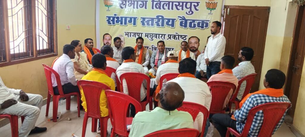 Hindtimes news मछुआरा प्रकोष्ठ बिलासपुर संभाग स्तरीय बैठक मछुआरा प्रकोष्ठ विस्तार हेतु भारतीय जनता पार्टी ,प्रदेश संयोजक श्री प्रदीप केवट जी के द्वारा बैठक आयोजन किया गया,बिलासपुर में मछुआरा प्रकोष्ठ विस्तार के लिए विस्तार पूर्वक चर्चा हुआ जिसमें पूरे बिलासपुर संभाग शहरी एवं ग्रामीण पदाधिकारी उपस्थित हुए और पूरे विस्तार से जानकारी प्रदीप भैया के द्वारा दिया गया और जल्द से जल्द विस्तार करना है दिशा निर्देश दिया गया