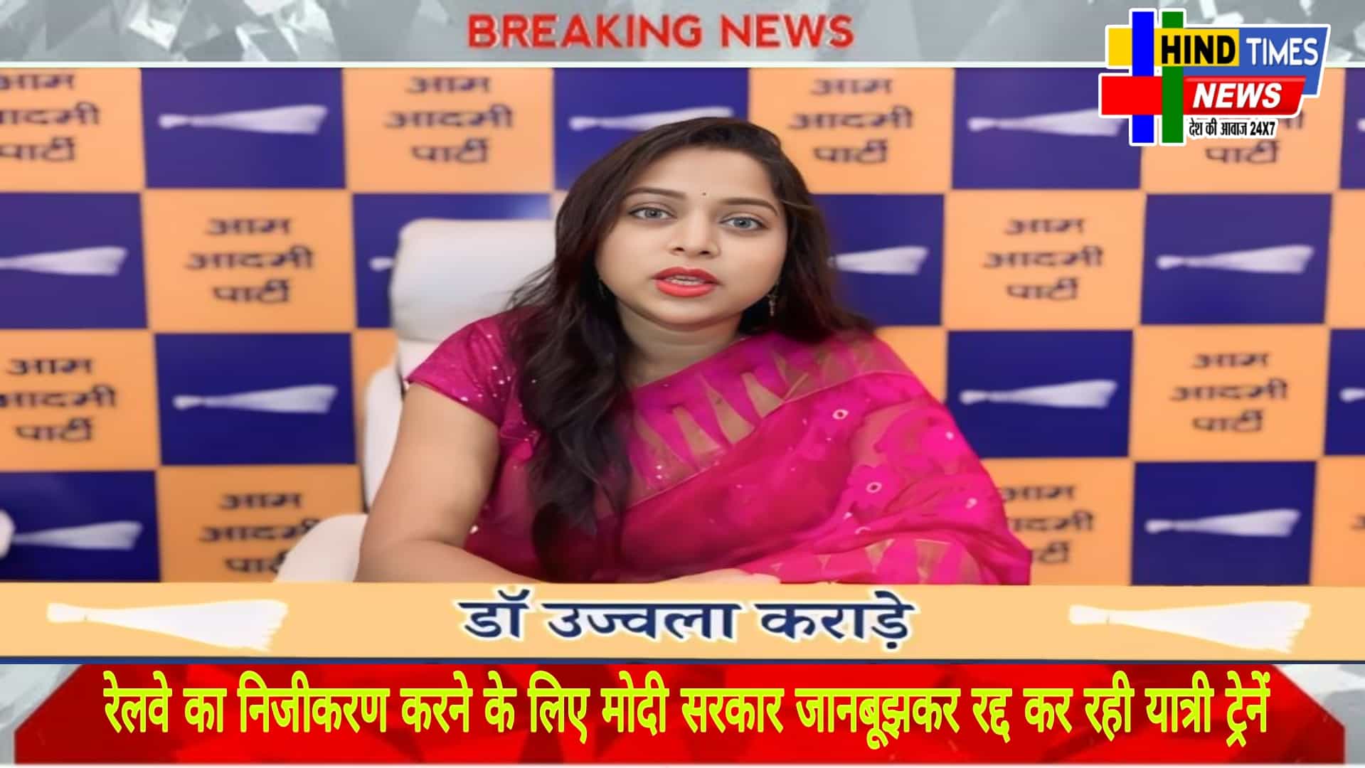 Hindtimes news बिलासपुर। आम आदमी पार्टी ने केंद्र की मोदी सरकार पर आरोप लगाया है कि रेलवे का निजीकरण करने के मकसद से यात्री ट्रेनों को रद्द किया जा रहा है। पार्टी की पूर्व विधानसभा प्रत्याशी डॉ. उज्वला कराड़े ने इस मुद्दे पर बयान जारी कर केंद्र सरकार को घेरा है।