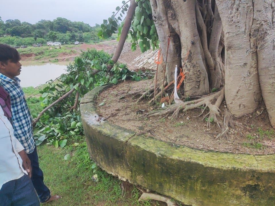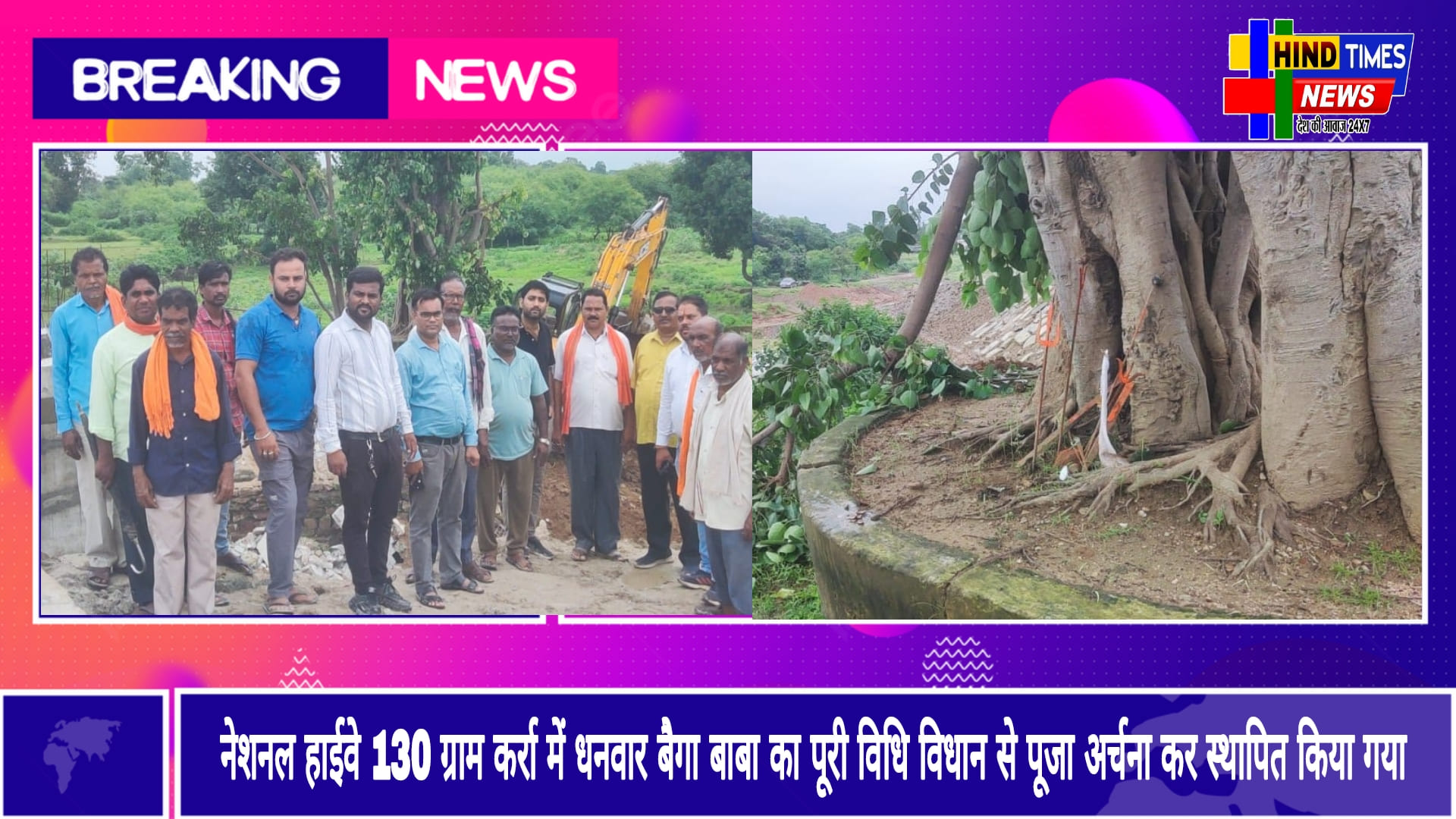Hindtimes news 24X7 मस्तुरी।नेशनल हाईवे क्र 130 में प्रभावित ग्राम कर्रा एवं लिमतरा मे स्थित धनवार बैगा एवं पीपल वृक्ष जो पूर्व मे स्थापित था|