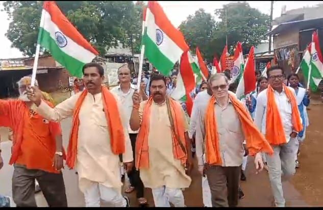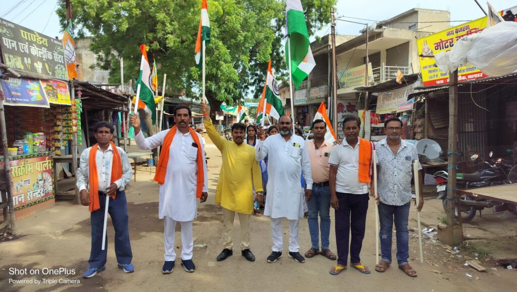 “हर घर तिरंगा” मंडल अध्यक्ष राजकुमार साहू ने सभी से आग्रह किया की सभी 15 अगस्त तक अपने-अपने निवास स्थानों पर गौरव के साथ राष्ट्रीय ध्वज फहराएं और हर घर तिरंगा अभियान डॉट कॉम पर अपनी तस्वीर अपलोड कर इस महत्वपूर्ण राष्ट्रीय अभियान की सफलता में अपना सार्थक योगदान सुनिश्चित करें। रंजीत सिंह ठाकुर मंडल महामंत्री ने कहा शान तिरंगा, मान तिरंगा, हम सबका अभिमान तिरंगा भारत माता की जय के उद्घोष के साथ पदाधिकारियों कार्यकर्ताओ ने यात्रा में अपार उत्साह दिखाया। अनुसूचित जनजाति जिला अध्यक्ष चंद्रप्रकाश सूर्य,पूर्व महामंत्री राजकुमार वर्मा,मंडल उपाध्यक्ष दिलीप पांडे, किसान मोर्चा के उपाध्यक्ष धर्मेंद्र सिंह ठाकुर,अनुसूचित जाति के मंडल अध्यक्ष लोकनाथ बंजारे सतीश वर्मा, मिलू राम केवट र्छोटू सिंह ठाकुर,नोहर पटेल,विधिराम रजक ,आकाश केवट,सहित भाजपा कार्यकर्ता मौजूद थे।