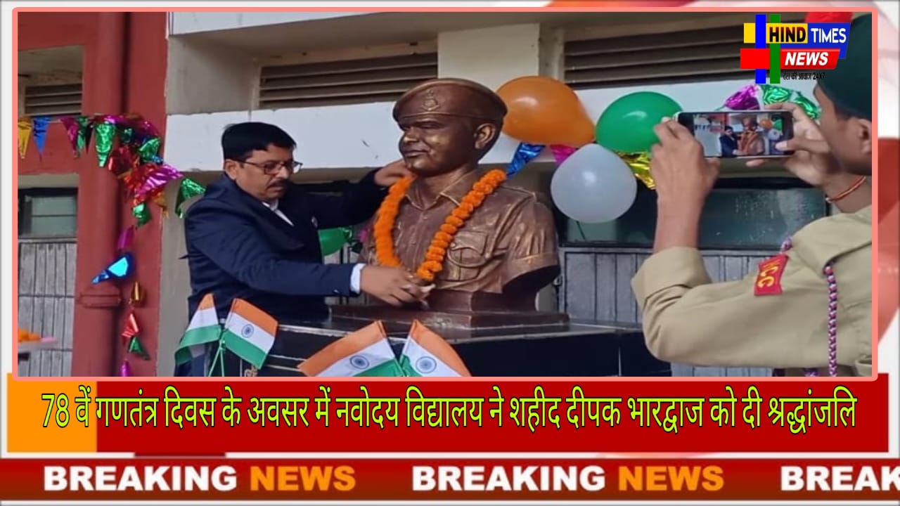 Hindtimes news पी एम श्री स्कूल जवाहर नवोदय विद्यालय मल्हार, बिलासपुर में स्वतंत्रता दिवस का पर्व हर्षोल्लास के साथ मनाया गया। इस अक्सर पर विद्यालय ने अपने पूर्व छात्र दीपक भारद्वाज को विशेष रूप से याद किया। विशेष कार्यक्रम शहीद दीपक भारद्वाज की विद्यालय में स्थित शहीद स्थल पर आयोजित किया गया जिसमें सर्वप्रथम विद्यालय के प्राचार्य एम के श्रीवास्तव ने शहीद दीपक भारद्वाज की प्रतिमा के समक्ष दीप प्रज्ज्वलित कर श्रद्धा सुमन अर्पित किए।