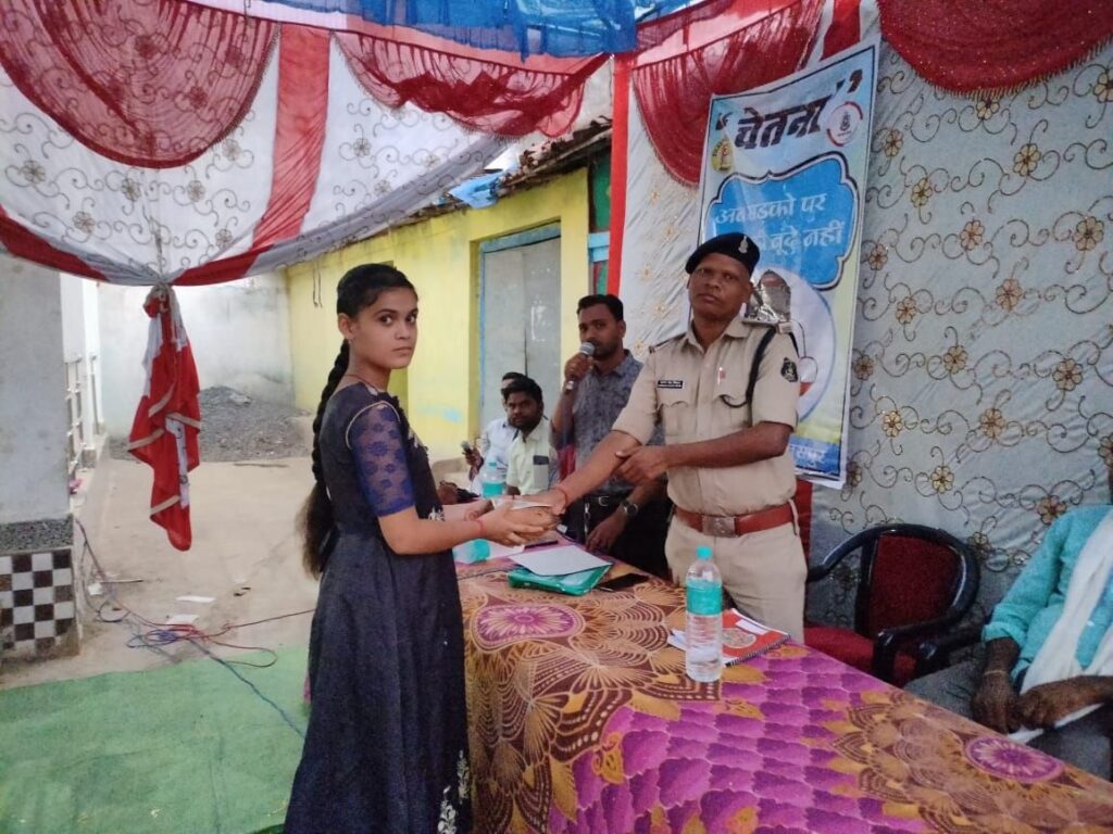 लोगों ने सबसे अपने अपने परिवार की सुरक्षा की जिम्मेदारी ली l यातायात से संबधी नियम,सुरक्षा कार्यक्रम आए लोगों ने अपने अपने घरों को सुधारने की पहल कर संकल्प लिया l अपराध पर नियंत्रण और यातायात समेत महिला अपराध व नशा मुक्ति को लेकर जिले में वृहद स्तर पर अभियान चलाया जा रहा है। सीपत थाना क्षेत्र अंतर्गत करमा में इस ‘चेतना’ अभियान का रविवार को किया गया