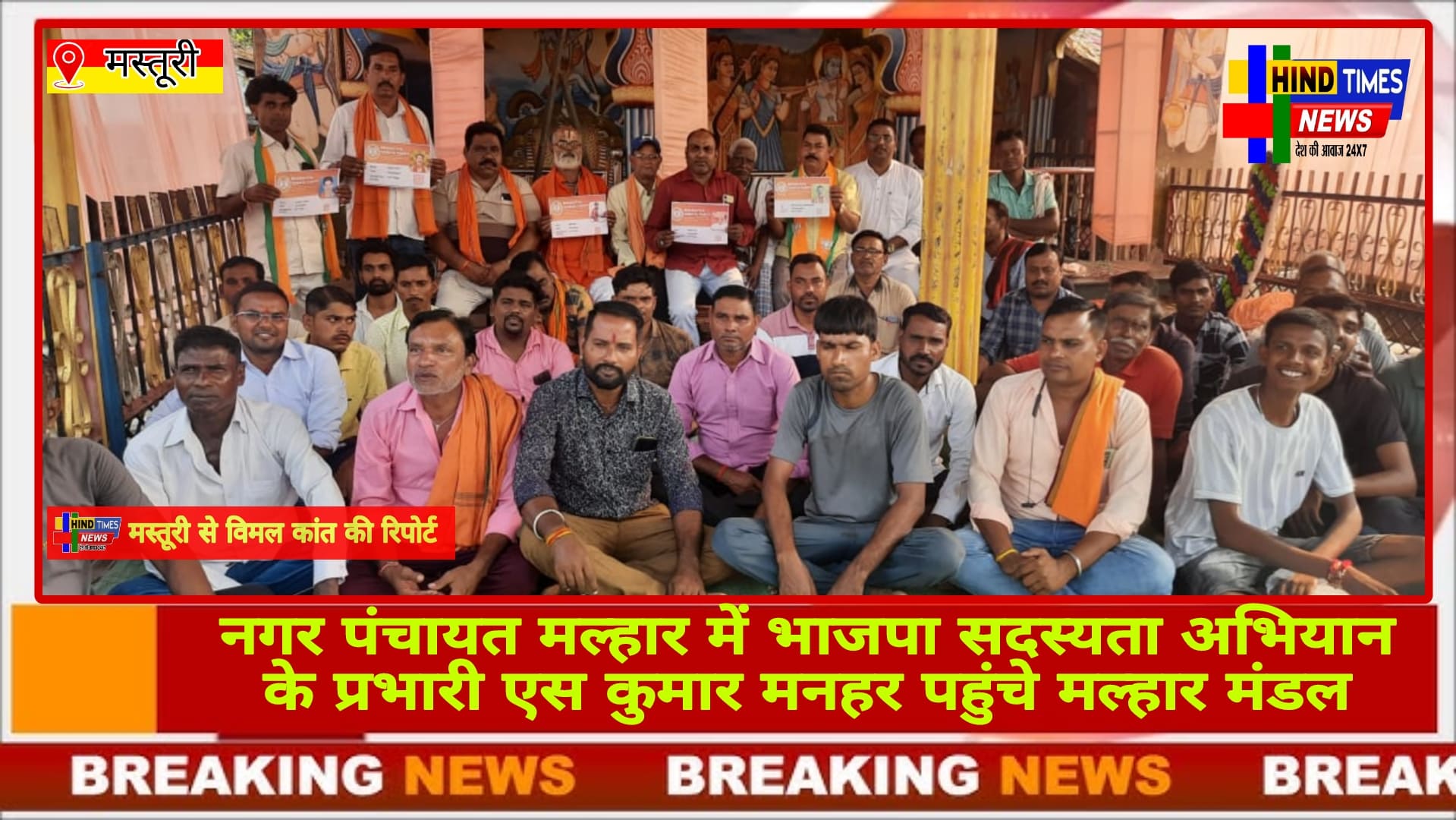 Hindtimes news भाजपा सदस्यता अभियान के प्रभारी एस कुमार मनहर पहुंचे मल्हार मंडल अध्यक्ष,महामंत्री उपाध्यक्ष सहित अनेक कार्यकर्ताओं को दिलाया पार्टी का सदस्यता साथी ही केंद्र में तीसरी बार व छत्तीसगढ़ में पून: भाजपा सरकार बनने पर कार्यकर्ताओं को बधाई देते हुए कहा भाजपा विश्व के सबसे बड़ी राजनीतिक पार्टी बन चुकी है