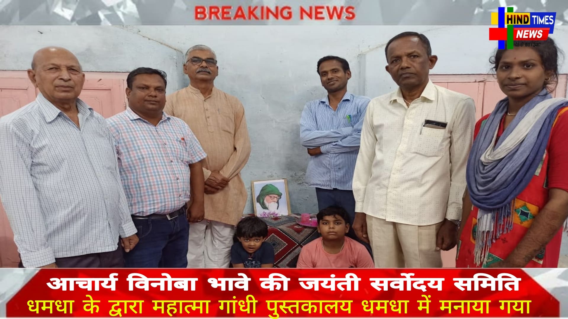 Hindtimes news बुधवार को भूदान आंदोलन के प्रणेता आचार्य विनोबा भावे की जयंती सर्वोदय समिति धमधा के द्वारा महात्मा गांधी पुस्तकालय धमधा में मनाया गया । सर्वप्रथम विनोबा जी के चित्र पर पुष्प अर्पित कर गुलाल लगाकर पूजन अर्चन किया गया तत्पश्चात कार्यक्रम में तकली चलाकर धागा बनाने का प्रदर्शन किया गया तथा विनोबा जी के जीवनी पर आधारित एल्बम दिखाया गया।
