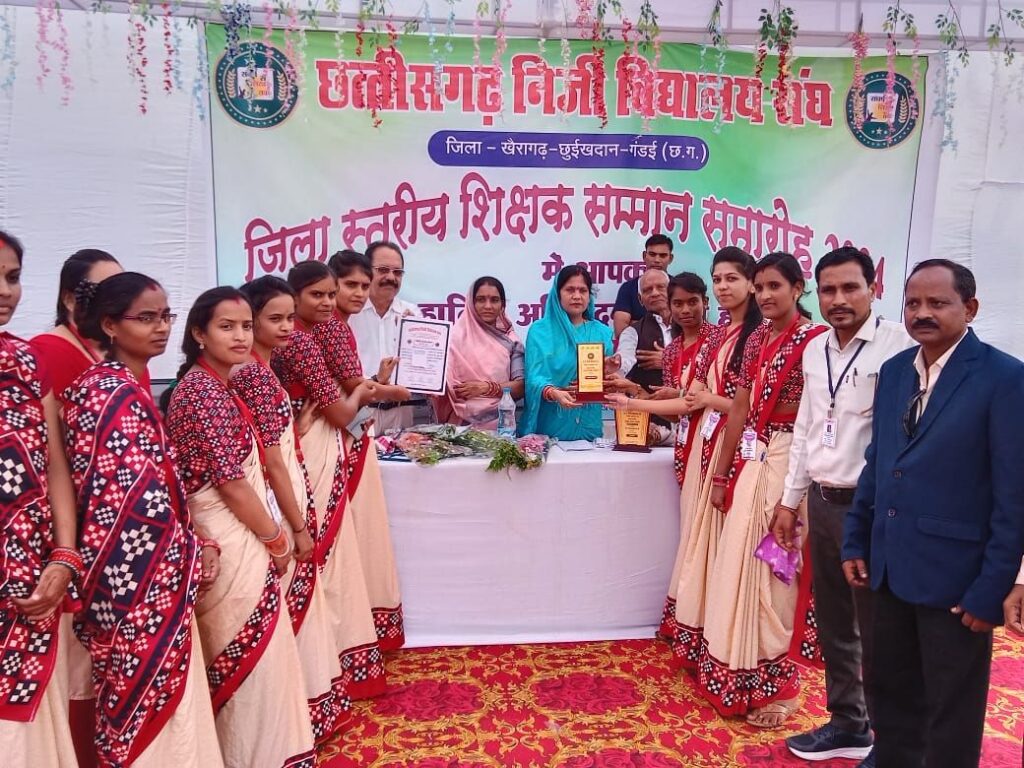Hindtimes news खैरागढ़ ! आज छत्तीसगढ़ निजी विद्यालय संघ द्वारा जिले में संचालित समस्त निजी स्कूलों में कार्यरत शिक्षकों के सम्मान हेतु जिला स्तरीय शिक्षक सम्मान समारोह का आयोजन वेद विज्ञान विद्या मंदिर रोड अतरिया के स्कूल परिसर में किया गया।