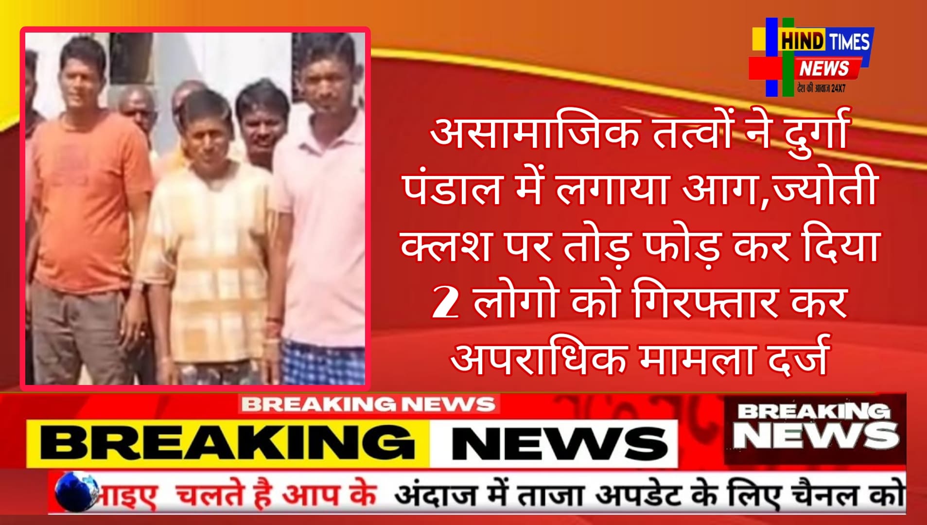 Hindtimes news धमधा/थाना अंतर्गत ग्राम जाताघर्रा में असामाजिक तत्वों द्वारा ग्राम में स्थापित दुर्गा माता की मूर्ति स्थान के पंडाल को आग के हवाले कर दिया व ज्योती क्लश पर तोड़ फोड़ कर दिया जिससे पूरा गांव आरोपियों के लिए आक्रोशित हो गया । वही इस मामले को लेकर पूरा गांव धमधा थाने पहुंचा जहा थाना प्रभारी पी डी चंद्रा ने तत्काल इस मामले में 2 लोगो को गिरफ्तार कर अपराधिक मामला दर्ज किया और बाकी और लोगो के खोज में लगी है। वही इस मामले में ग्रामीणों ने इस कृत्य को अपने आस्था और विश्वास के साथ खिलवाड़ बताया है जिसके ऊपर कड़ी कार्यवाही की मांग की है।