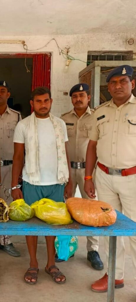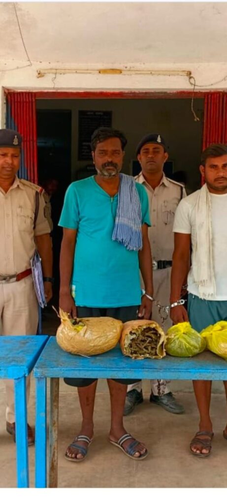 Hindtimes news धमधा में गांजा की बिक्री करते दो आरोपियों को धमधा बस स्टैंड में पुलिस ने पकड़ा है। आरोपियों को धारा 20 (इ) एनडीपीएस एक्ट के तहत कार्रवाई की जा रही है।थाना प्रभारी निरीक्षक पीडी चन्द्रा ने कह कि 15 अक्टूबर को आरोपी राजेन्द्र महाकुल द्वारा रामसाय को फोन में कहा कि तुम धमधा बस स्टैण्ड में मिलो मैं वहीं गांजा का पैकेट लेकर मिलूंगा तब 15 अक्टूबर को सुबह के समय धमधा बस स्टैण्ड में राजेन्द्र महाकुल का इंतजार कर रहा था, उसी समय राजेन्द्र महाकुल 24 पैकेट गांजा लेकर आया। इसमें से रामसाय 2 पैकेट को 9 हजार रु. में दिया और दो पैकेट को राजेन्द्र महाकुल अपने पास रखा। इसके बाद आरोपी अपने गांजा पैकेट को विक्री करने ले जाने के लिये बस का इंतजार करते खड़े थे। इसी दौरान पुलिस बस स्टैण्ड धमधा में जाकर रामसाय पटेल एवं राजेन्द्र महाकुल को रंगेहाथ पकड़कर कार्रवाई की हैं। इनके कब्जे से 4 किलो गांजा कीमती करीबन 40 हजार रूपये की मिली है। आरोपियों पर धारा 20 (इ) एनडीपीएस एक्ट के तहत गिरफ्तार किया गया